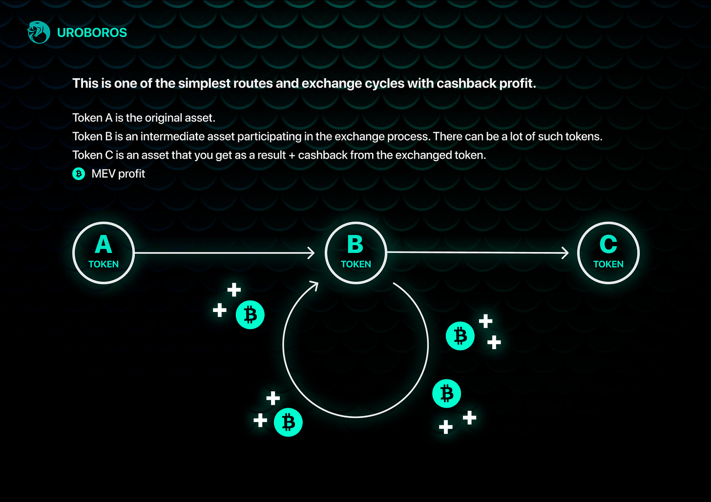 Previously, only miners and MEV bots were engaged in extracting such profits. They make money using arbitrage, a strategy designed to make money on the difference between buying and selling assets, waiting for your transaction in the mempool. The main disadvantage of MEV is the increase in transaction costs for all players, which arises from the “interception” of arbitrages between miners and bots. Uroboros, on the other hand, offers its users to profit from this thanks to the unique Y-cyclicity algorithm.